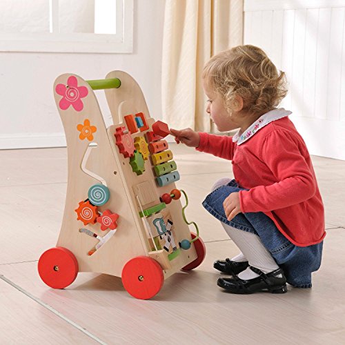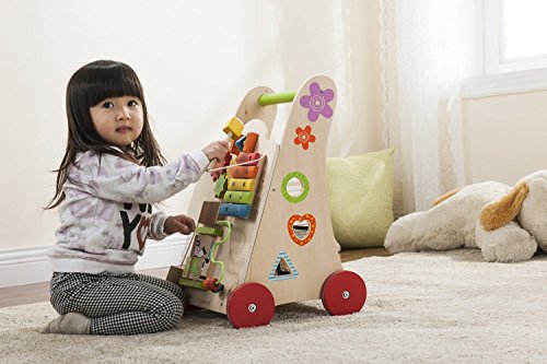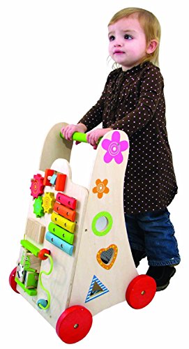 Take fun on the go with the Maxim EverEarth Activity Walker. This eco-friendly playtime staple features a xylophone and mallet, wire maze, four-piece interchangeable puzzle, shape sorter, peg maze, and moving flower gears. About Maxim Enterprises Committed to quality, consumer satisfaction, and child-safety, Maxim is a company that believes in responsible todays for brighter tomorrows. Each item made by Maxim is crafted from researched materials. For example, the company only creates wooden toys that are only made from government-approved reforested land and trees. Focused on wellness of employees to the safety of the children who use their products, Maxim works to be a trusted company you can rely on. Eco-friendly wood walker with activities. Xylophone with mallet, wire maze, 4-piece puzzle, and more. Water-based nontoxic paints. Recommended for ages 18 months and up. Dimensions: 14L x 14W x 20.5H in..