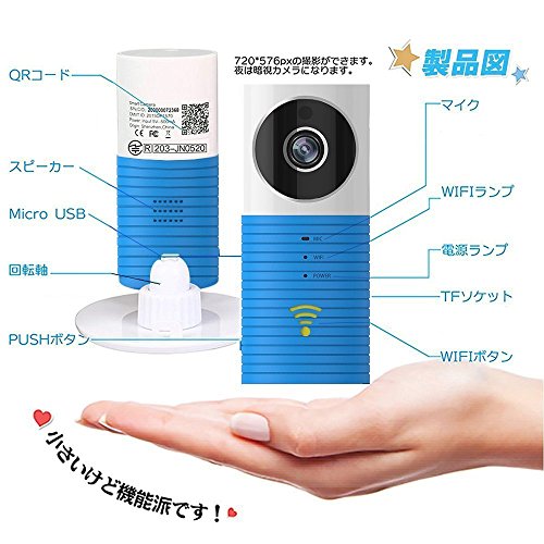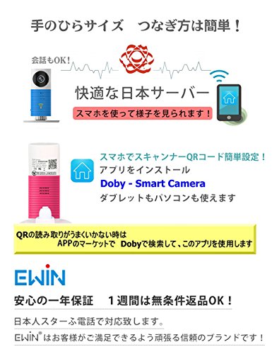 Ewin® ネットワークカメラ ベビーモニター/ペットモニター スマート防犯カメラ 暗視撮影 マイク内蔵 音声通話 生中継 動体感知 sdカード対応 日本語アプリ 簡単接続 自宅警備くん 【日本語説明書と1年間保証付き】 (ブルー)