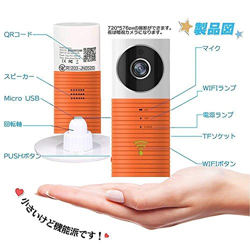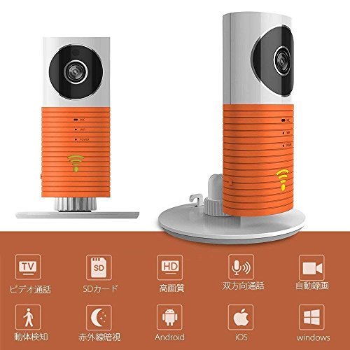 Ewin® ネットワークカメラ ベビーモニター/ペットモニター スマート防犯カメラ 暗視撮影 マイク内蔵 音声通話 生中継 動体感知 sdカード対応 日本語アプリ 簡単接続 自宅警備くん 【日本語説明書と1年間保証付き】 (オレンジ)