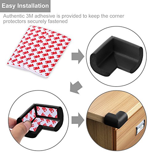 - EASY INSTALLATION: Strong double-sided tapes make the corner guards be easily and firmly attached to the sharp surface but difficult for the babies to pull off. Simply peel adhesive tape backing and place at the desired corner, allow 24 hours for adhesive dry before using