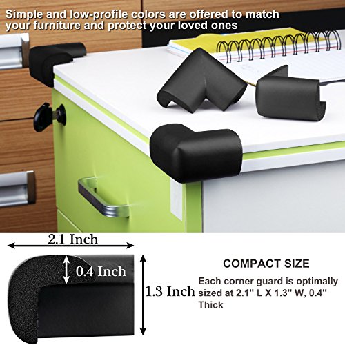 - COMPACT SIZE & STYLISH COLOR: Each corner guard is optimally sized at 2.1" L X 1.3" W, 0.4" Thick, suitable for "corner" tables, desks, bedside chairs, chests, cabinets, shelves, stairs and more. Simple and low-profile colors are offered to match your furniture and protect your loved ones
