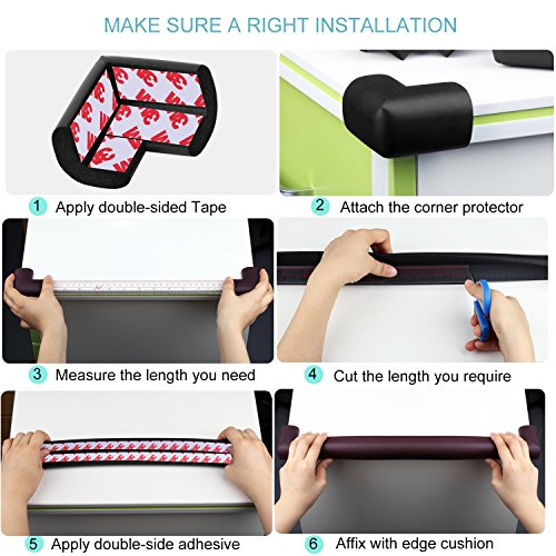 - MAKE SURE A RIGHT INSTALLATION: For thin furniture, ensure you keep 60% of the edge cushion guards on top surface instead of 40%. The edge guard comes in a roll. You can cut off any length or make more corner guards to protect the edges of anywhere you want to protect your baby. Simply affix with the provided double-sided Tape and you're done in no time