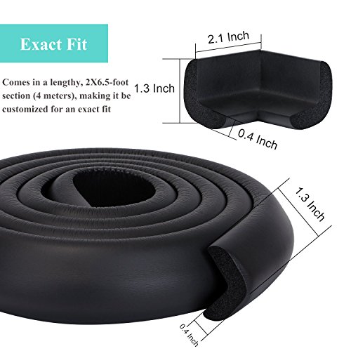 Excgood Table Edge Guard & Corner Bumpers for Baby Proofing, Premium Soft Rubber 13Ft Long with 4 Corner Cushions For Child & Baby-Proofing Protection, Safety for Edges & Corners-Black [並行輸入品]