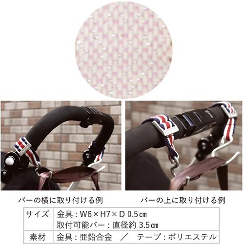 - [本体サイズ] 約フックのサイズ:H6xW5cm。ストラップの長さ:19cm。ストラップが巻きつくハンドルバーの最大直径:4.5cm