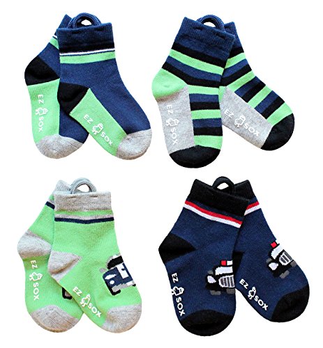 小さな子供にソックスをはくように教えることは難題です。Ez Soxの「The I Can Do It!」ソックスは、キッズの最初のトレーニングソックスに最適。自分で着替えることができる自信をつけることができます。特許取得済みの強化ループ技術で、簡単にソックスをはいて、上まで伸ばすことができます。かわいいデザインでどちらが上方向かを教えてくれます。縫い目のないつま先部分と、滑り防止のグリッパーがついているので、快適な履き心地で、しっかりと歩くことができます。とってもイージー(EZ)!