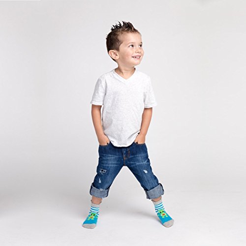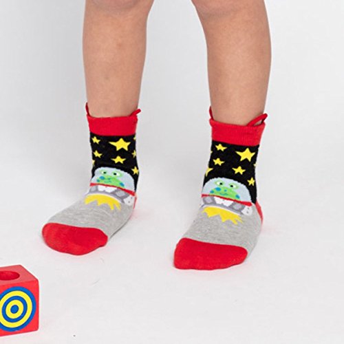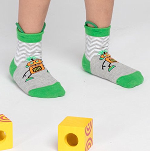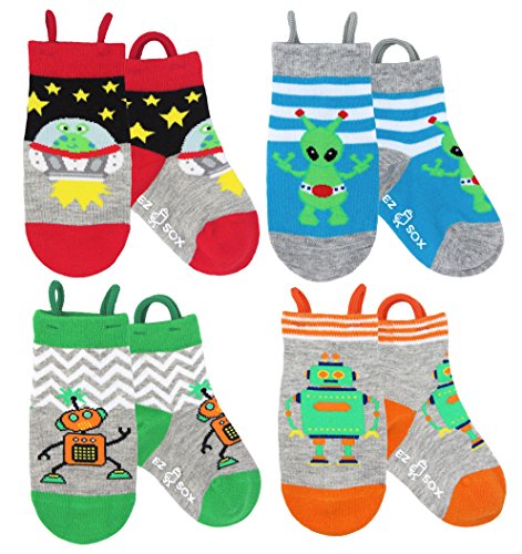 Ez Sox キッズアニマルソックス 縫い目のないつま先 4パック、(シューズサイズ7-12/3~5歳) Mサイズ エイリアン-ロボット