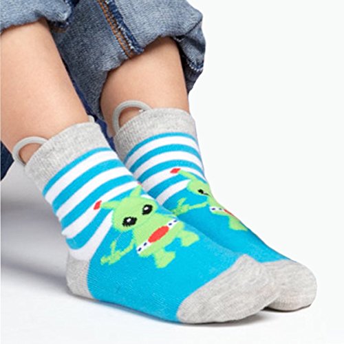 小さな子供にソックスをはくように教えることは難題です。Ez Soxの「The I Can Do It!」ソックスは、キッズの最初のトレーニングソックスに最適。自分で着替えることができる自信をつけることができます。特許取得済みの強化ループ技術で、簡単にソックスをはいて、上まで伸ばすことができます。かわいいデザインでどちらが上方向かを教えてくれます。縫い目のないつま先部分と、滑り防止のグリッパーがついているので、快適な履き心地で、しっかりと歩くことができます。とってもイージー(EZ)!