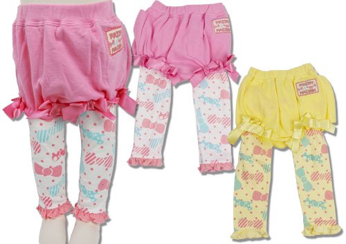 ブルマ部分の前側裾にサテンリボンが付いて、おしりにもBIGなリボンで存在感大のブルマ付きパンツです。 ふわりとした軽さ、温かさをもつ接結天竺綿素材&タオルのような感触のミニ裏毛素材使用 ゴムウエストだからラクラク*^v^* おしりにBIGなリボン付☆ レギンス風部分にもリボンのプリントがカワイイ(*^。^*) 色はピンクとクリームの2色展開です サイズ: 90/95 カラー: 薄ピンク/クリーム 素材: 綿100% 原産国: 中国