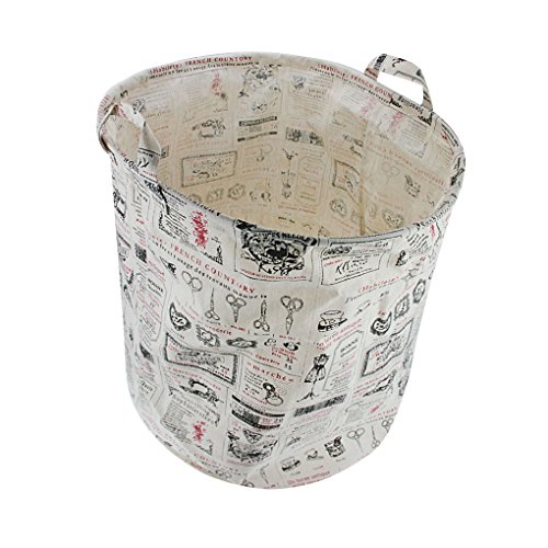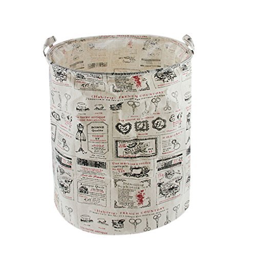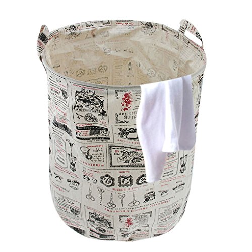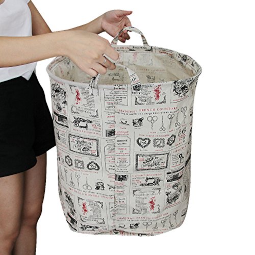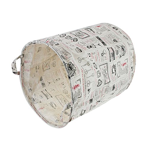 ランドリーバスケット 英字柄 縞模様 防水コーティング 折りたたみ 手持ち付く ナチュラル 帆布 キャンバス 日常生活 収納ケース 着替え おもちゃ 丸形 円柱型 コンパクト