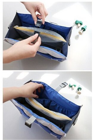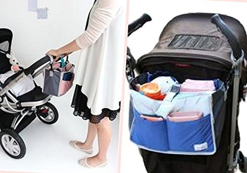 ベビーカー用バッグ可愛い ドリンク ホルダー 小物入れ ベビーカー小物入れカバン バッグインバッグお洒落 バギー用収納ポーチ バックルで留めっている 哺乳瓶 おむつ 携帯 小物 整理 収納収納バッグ ブルー