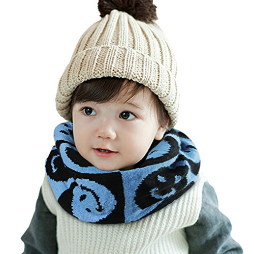 可愛いスヌード キッズ 子どもネックウォーマー 柔らか ニットマフラー 幼児 ベビー 防寒スヌード 秋冬 寒さ対策 笑顔 デザイン お洒落防寒グッズ アクセサリー プレゼント ギフト ブルー
