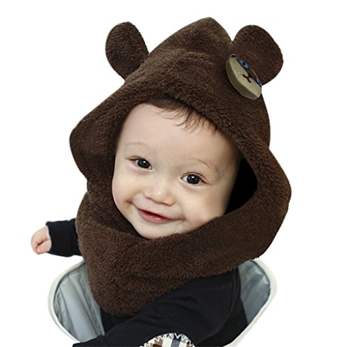 キッズ可愛い帽子 子供ハットお洒落 ベビーキャップ CAP 帽子+ネックウォーマーの連体セット 秋冬 防寒対策 ぼうし 可愛いマフラー ネックウォーマー もこもこ 男の子 女の子 かぶりもの アクセサリー 6か月-4歳子供に適用 コーヒー色