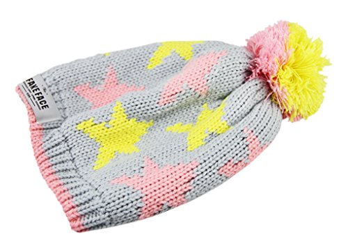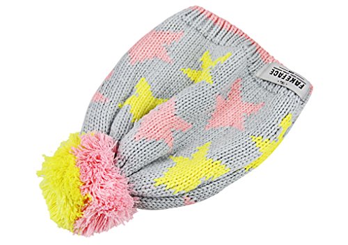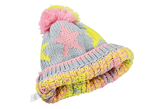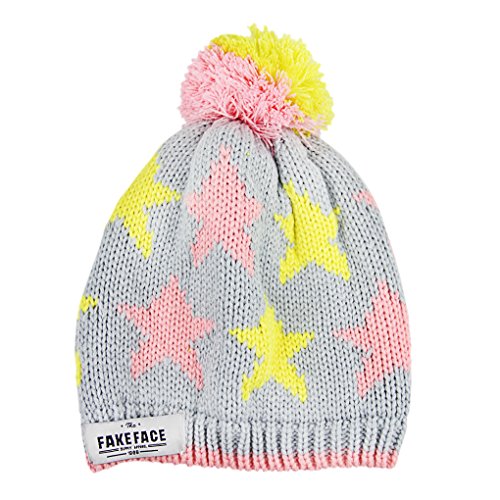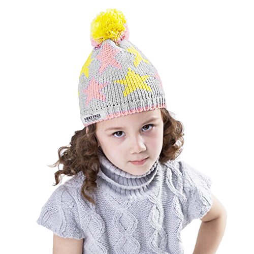 可愛いニット帽子供 お洒落ハットキッズ ボーイズ ガールズ ネットキャップ 防風、防寒対策 ストレッチ 星柄 ボンボン付き ケーブル編み ミックス色 誕生日/クリスマス/新年 プレゼント グレー