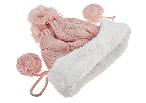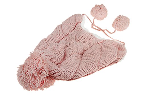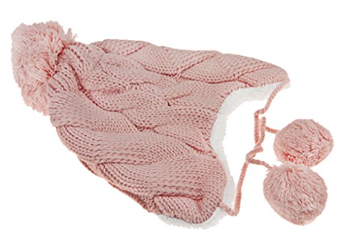 キッズニット帽可愛い お洒落耳当て子供 ハット 男の子 女の子 キャップ ボンボンニットキャップ 内側ボア付き 秋冬 防寒 耳カバー ケーブル編み 無地 ユニセックス クリスマス/新年 プレゼント 2-6歳キッズ適用 ピンク