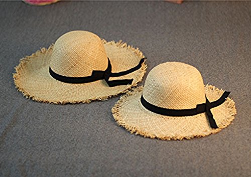 商品名:ストローハット 折りたたみ レディース 子供用 麦わら帽子 おしゃれ ビーチハット リボン付き 日よけ帽子 夏 UVカット つば広 ハット 女性 麦わら 旅行 お出かけ 親子 お揃い ファッション 帽子素材:ラフィア