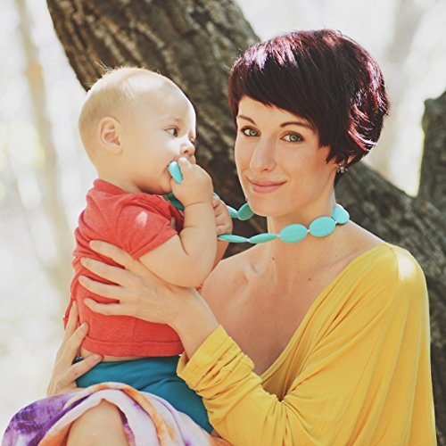 Silicone Teething Necklace with Baby-safe Jewelry By FAVEfemme - Bpa-free, Best Soothing Method, Better Than Baltic Amber, Teething Necklace for Mom (Tropical Turquoise Punch/Teal)