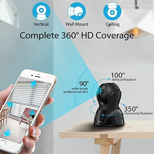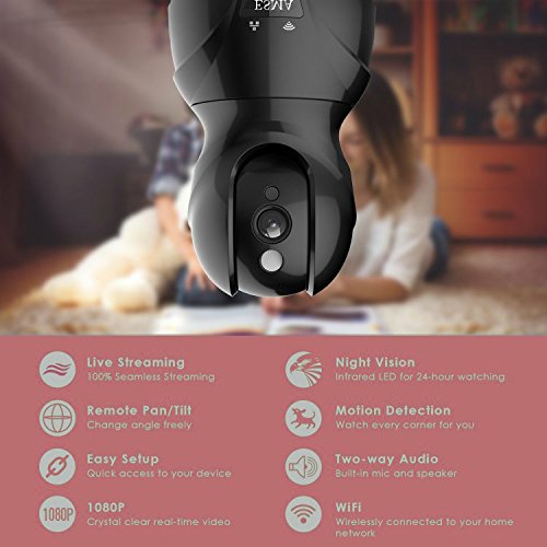 ワイヤレスIPカメラ ネットワークカメラ 1080P 200万画素 音声双方向機能 ESMA ベビーモニター 監視カメラ WIFI対応 首振り式 暗視撮影・マイク内蔵通信可能 動体検知 ペット/子供見守り (ブラック)))暗視ネットワークカメラ 無線監視 ip カメラホームセキュリティ監視 ペット 子供見守り、 PTZ、 暗視