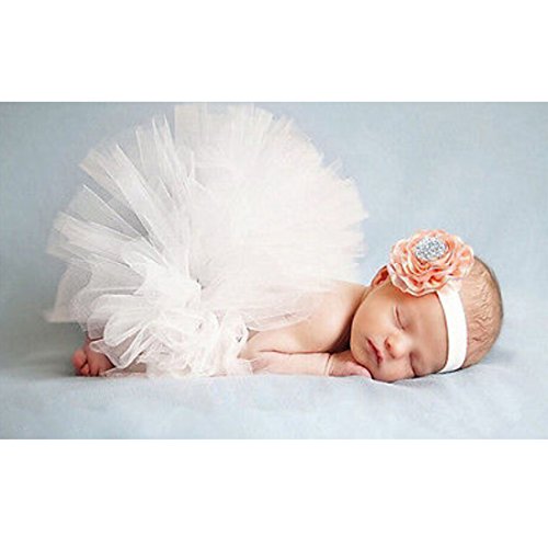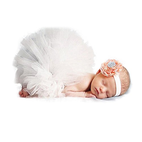 (フィーショー)FEESHOW ベビーちゃん 花神 コスチューム プリンセス チュウチュスカート+ヘアバンドセット セレモニードレス 着ぐるみ 10色 お食い初め 記念撮影 出産祝いギフト プレゼント 寝相アート 百日祝い (ホワイト)