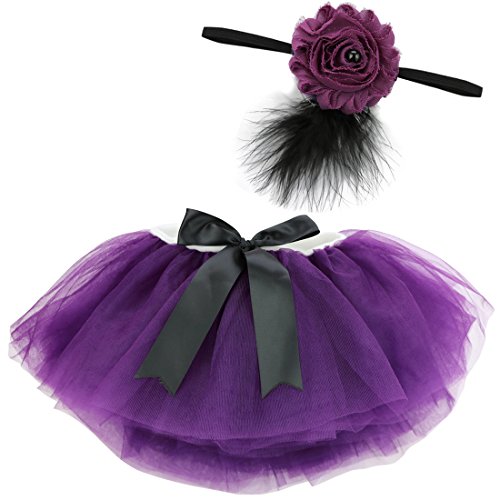 (フィーショー)FEESHOW ベビーちゃん 花神 花の子コスチューム プリンセス お嬢様風 チュウチュスカート+ヘアバンドセット セレモニードレス 着ぐるみ お食い初め 記念撮影 出産祝いギフト プレゼント 寝相アート 百日祝い (パープル・リボン)
