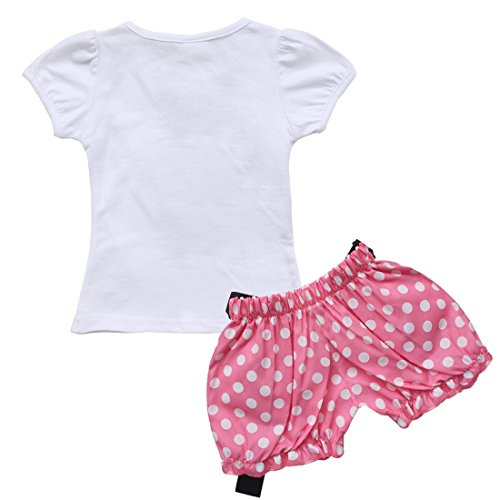 (フィーショー)FEESHOW 女の子 ミッキちゃんチュニック ミニちゃんコスチューム Tシャツ+スカート/半ズボン 水玉 ベビーちゃん上下セット 2点セット 入園 通園 ガール ガールズ 90/100/110/120 2種デザイン 2色 ホットピンクパンツ 120