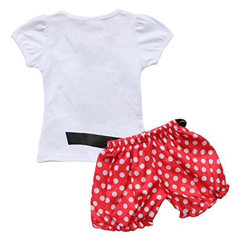 (フィーショー)FEESHOW 女の子 ミッキちゃんチュニック ミニちゃんコスチューム Tシャツ+スカート/半ズボン 水玉 ベビーちゃん上下セット 2点セット 入園 通園 ガール ガールズ 90/100/110/120 2種デザイン 2色 レッドパンツ 110