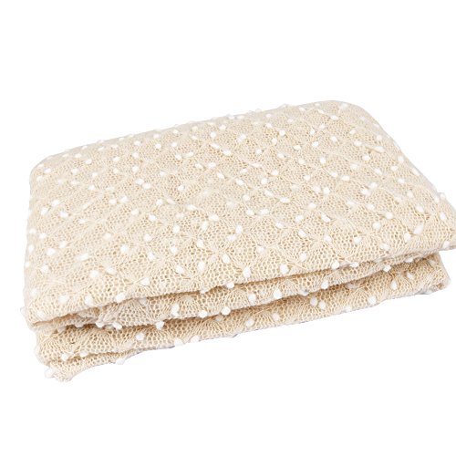 (フィーショー)FEESHOW 赤ちゃん 新生児 ニット編み ベビーラップブランケット モダンバーラップ おくるみ ガーゼ モヘア生地 柔らかい ドット柄 ヘッドドレス付き マルチブランケット 写真撮影 写真小道具 寝相アート 出産祝い 百日祝い クリスマス ベビーギフト7色 (ベージュ)