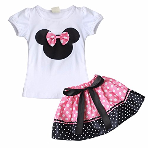 (フィーショー)FEESHOW 女の子 ミッキちゃんチュニック ミニちゃんコスチューム Tシャツ+スカート/半ズボン 水玉 ベビーちゃん上下セット 2点セット 入園 通園 ガール ガールズ 90/100/110/120 2種デザイン 2色 ホットピンクスカート 100