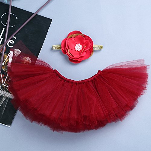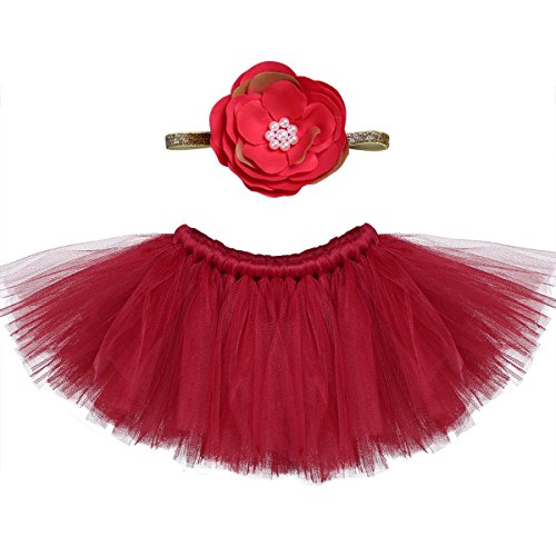 (フィーショー)FEESHOW ベビーちゃん 花神 花の子コスチューム プリンセス お嬢様風 チュウチュスカート+ヘアバンドセット セレモニードレス 着ぐるみ お食い初め 記念撮影 出産祝いギフト プレゼント 寝相アート 百日祝い (バーガンディー)