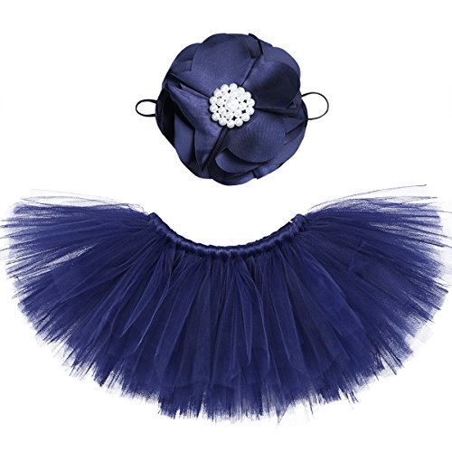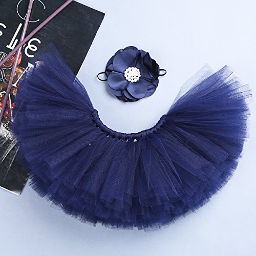(フィーショー)FEESHOW ベビーちゃん 花神 花の子コスチューム プリンセス お嬢様風 チュウチュスカート+ヘアバンドセット セレモニードレス 着ぐるみ お食い初め 記念撮影 出産祝いギフト プレゼント 寝相アート 百日祝い (ネイビーブルー)