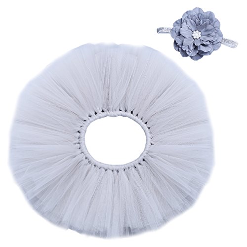 (フィーショー)FEESHOW ベビーちゃん 花神 花の子コスチューム プリンセス お嬢様風 チュウチュスカート+ヘアバンドセット セレモニードレス 着ぐるみ お食い初め 記念撮影 出産祝いギフト プレゼント 寝相アート 百日祝い (グレー)