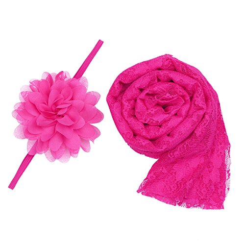 (フィーショー)FEESHOW ベビーラップブランケット モダンバーラップ おくるみ ガーゼ 柔らかい レース ヘッドドレス付き 写真撮影 写真小道具 寝相アート 出産祝い 百日祝い ベビーギフト (ローズレッド)