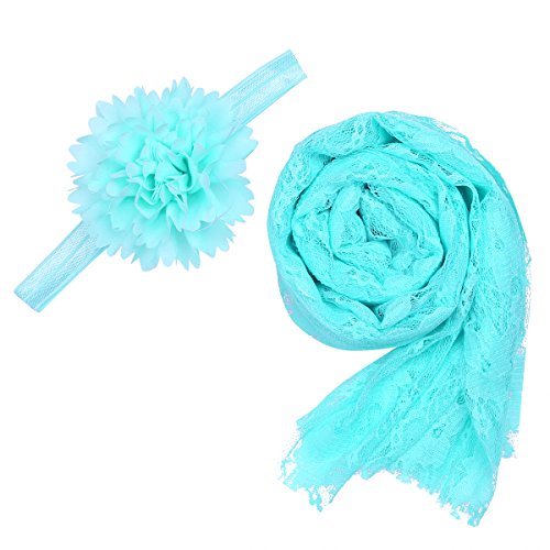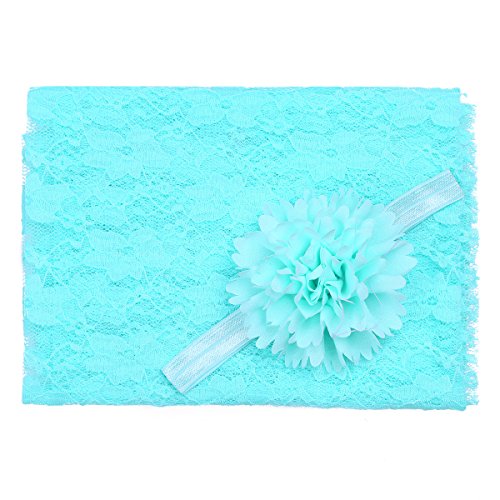(フィーショー)FEESHOW ベビーラップブランケット モダンバーラップ おくるみ ガーゼ 柔らかい レース ヘッドドレス付き 写真撮影 写真小道具 寝相アート 出産祝い 百日祝い ベビーギフト (スカイブルー)