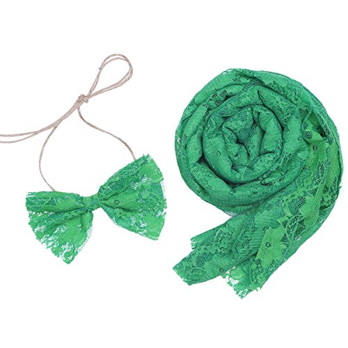 (フィーショー)FEESHOW ベビーラップブランケット モダンバーラップ おくるみ ガーゼ 柔らかい レース ヘッドドレス付き 写真撮影 写真小道具 寝相アート 出産祝い 百日祝い ベビーギフト (グリーン)