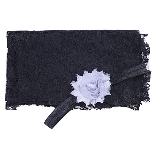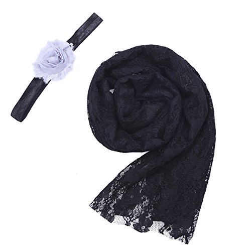 (フィーショー)FEESHOW ベビーラップブランケット モダンバーラップ おくるみ ガーゼ 柔らかい レース ヘッドドレス付き 写真撮影 写真小道具 寝相アート 出産祝い 百日祝い ベビーギフト (ブラック)