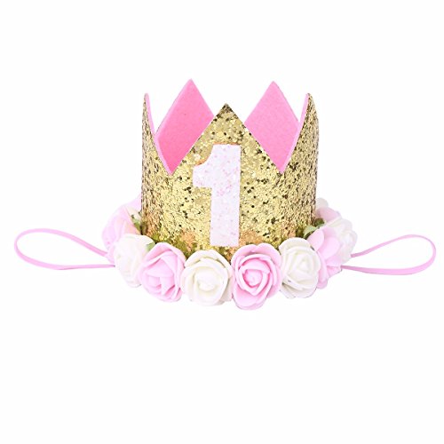 (フィーショー)FEESHOW ベビー 0-1歳頃 王冠 記念バースデ セレモニ ベビークラウン ハット ヘアバンド 帽子 ヘアバンド クラウン ゴールド1st 1 Free