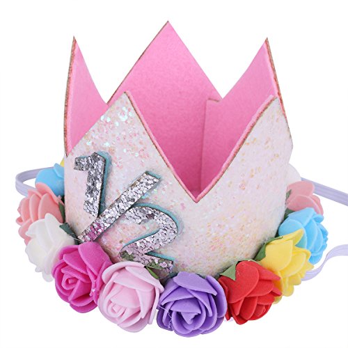 (フィーショー)FEESHOW ベビー 0-1歳頃 王冠 記念バースデ セレモニ ベビークラウン ハット ヘアバンド 帽子 ヘアバンド クラウン (Free, ローズ1/2)
