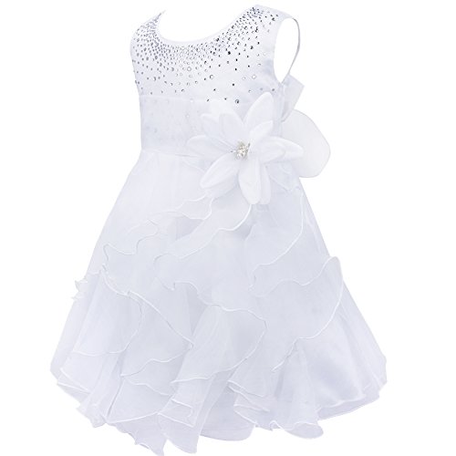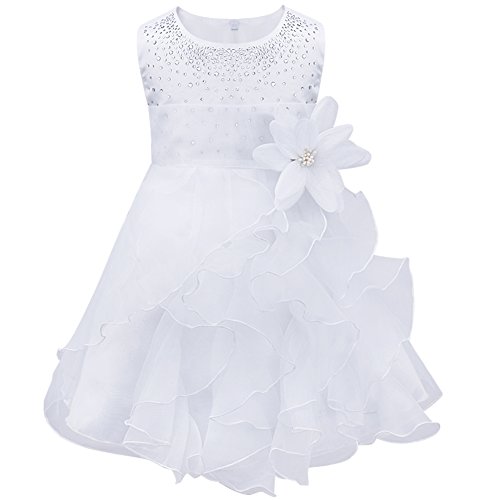 (フィーショー)FEESHOW 不規則裾ドレス ベビーフォマールドレス ベビーチュチュスカート 七五三 お食い初め 記念撮影 百日祝い 内祝い お宮参り 3ヶ月―3歳 (80, ホワイト)