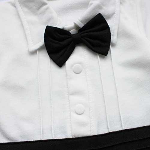 (フィーショー)FEESHOW 純綿生地ベビー ボーイズ ロンパース 冠婚葬祭 おしゃれ フォーマルスーツ タキシード おしゃれ着 洋服 上下2点セット ブラック&ホワイト 70(0-3ヶ月)