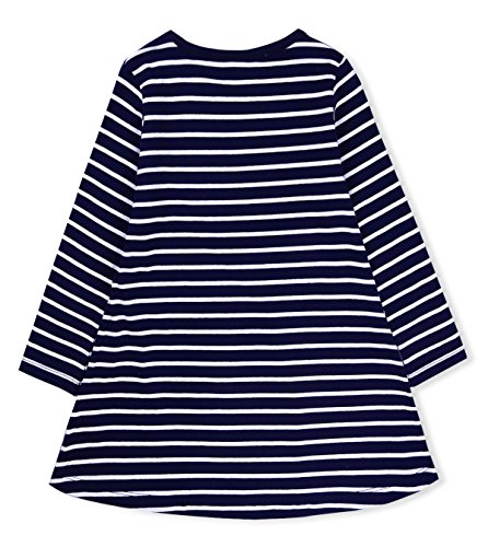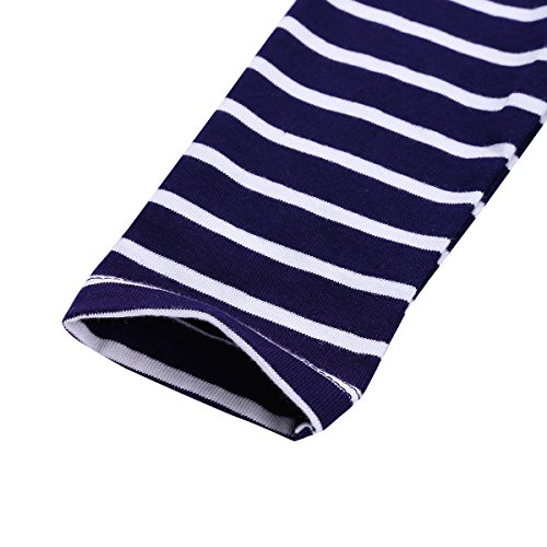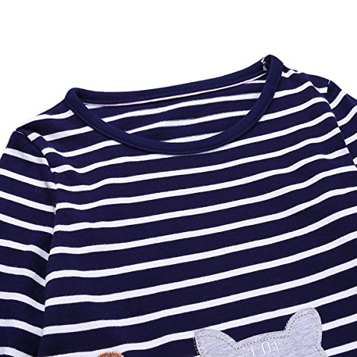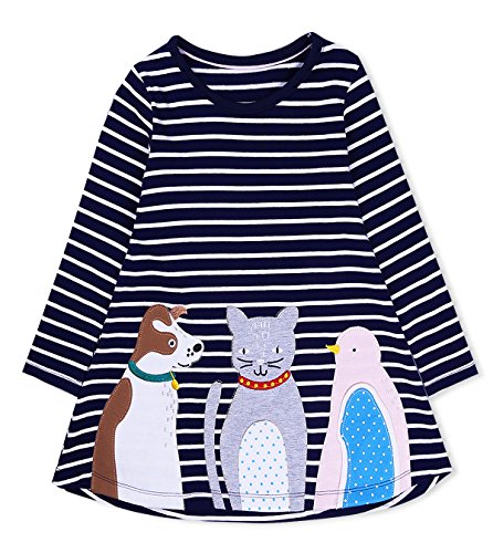 (フィーショー)FEESHOW ワンピース 女の子 子供服 おしゃれ 超可愛い 長袖ワンピース トップス 縞柄 お出かけ 通園 通学 キッズ ベビー ネイビーブルー 6-7