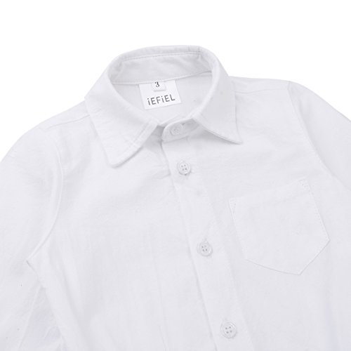 (フィーショー)FEESHOW 幼児男の子 ロングスリーブ フォーマル 紳士 シャツロンパース ジャンプスーツ キッズワイシャツ 柔らかい肌着子供 トップス 結婚式 発表会 ホワイト 3