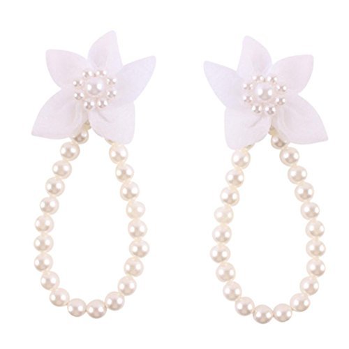 - FEITONG@ Trendy 1Pair Pearl Chiffon Barefoot Toddler Foot Flower Beach Sandals Anklet (White)
