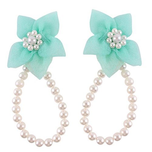 - FEITONG@ Trendy 1Pair Pearl Chiffon Barefoot Toddler Foot Flower Beach Sandals Anklet (Green)