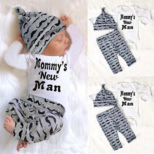 FEITONG新生児幼児ベビーBoy 'sプリントロンパーストップス+ロングパンツ+帽子
