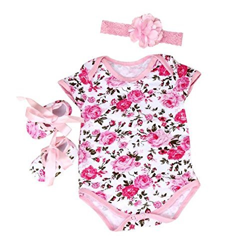 - FEITONG 3pcs Baby Girls Floral Print Romper Bodysuit +Headband+ Shoes Sets Clothes (Age 6-12M, Pink)