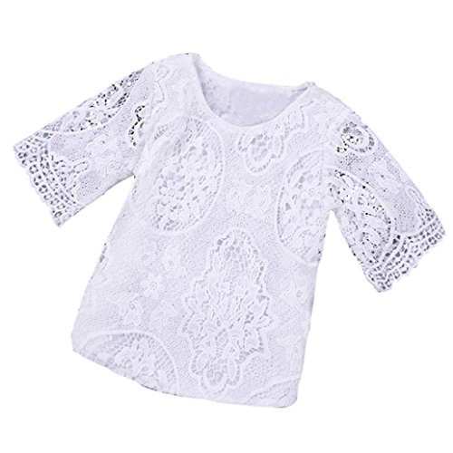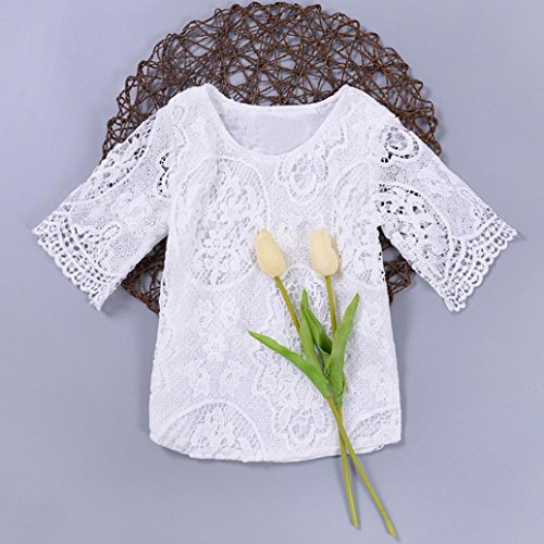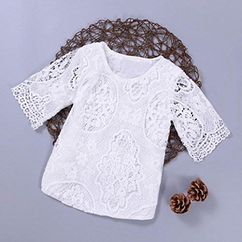FEITONG乳児幼児キッズ赤ちゃん女の子の半袖レース花Tシャツトップス服装服 カラー: ホワイト