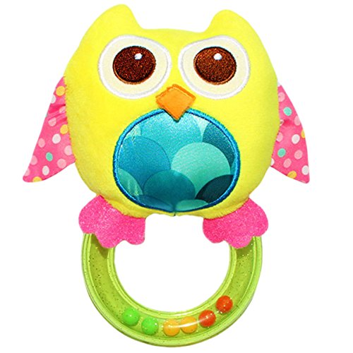 赤ちゃん 教育玩具 ベビー ガラガラ玩具 知育玩具 可愛い 面白い 動物 フクロウ イエロー