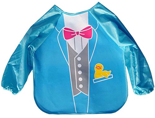 超可愛い お食事用 エプロン 長袖 ベビー用 子供用 幼児用 スモック ビブ 防水 絵画 防汚 幼稚園 保育園 ブルー 魔術師