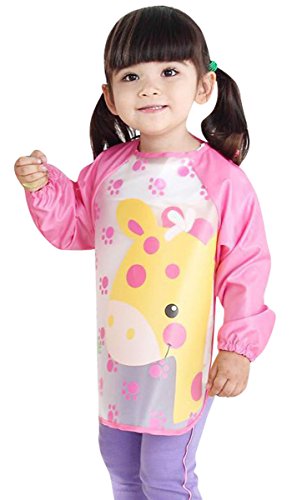 超可愛い お食事用 エプロン 長袖 ベビー用 子供用 幼児用 スモック ビブ 防水 絵画 防汚 幼稚園 保育園 ピンク 麒麟