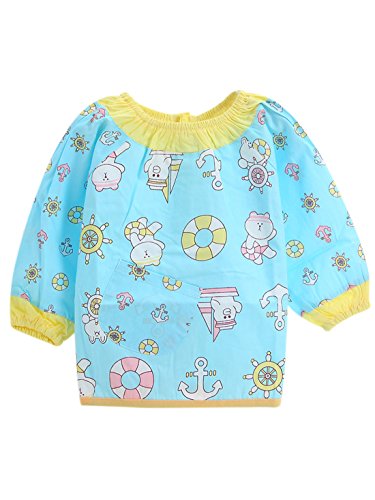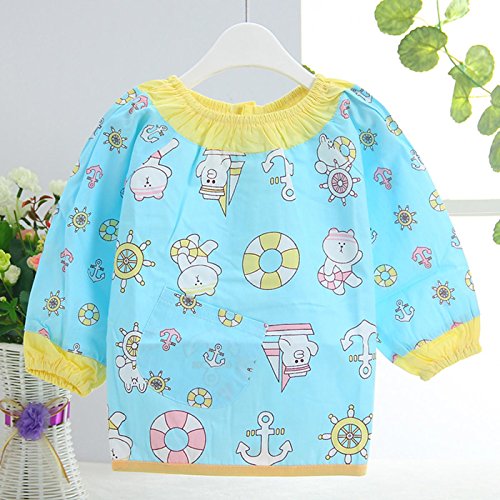 スモック 子供エプロン 赤ちゃん お食事用 人気 ビブ 洗い替え オーバーオール 長袖 可愛 クマ ブルー