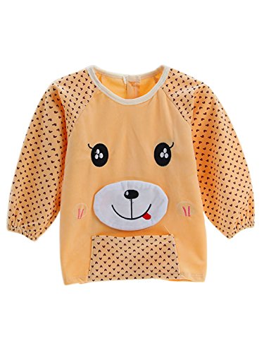 子供エプロン キッズ スモック 子供 エプロン 男の子 女の子 ビブ 洗い替え 子供服 お食事用 防水 汚れ対策 クマ 黄色い